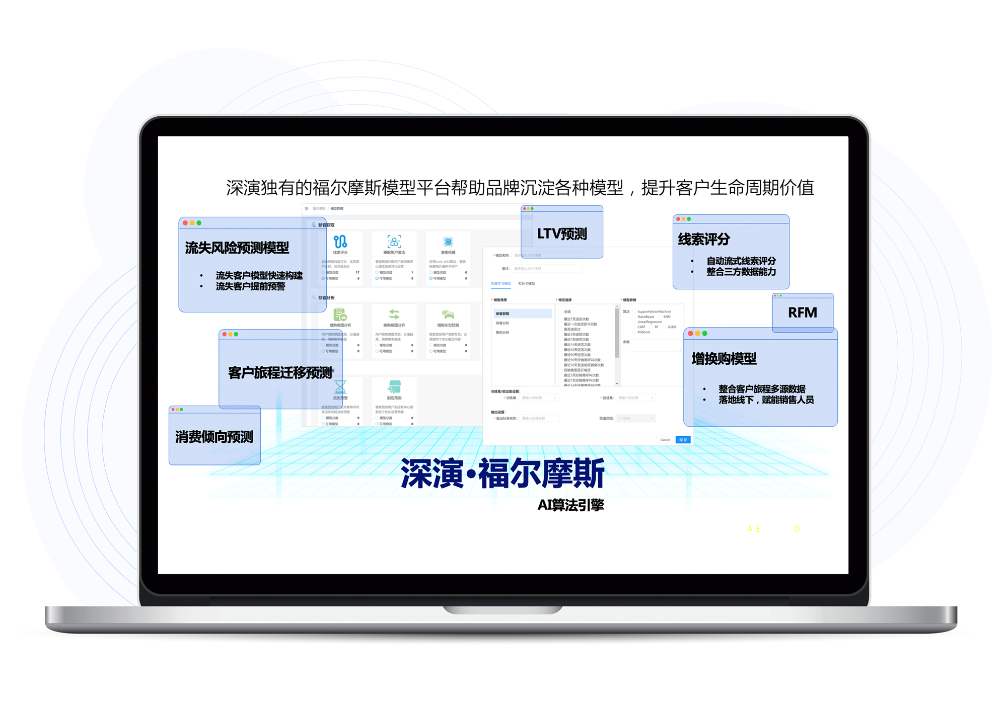 福尔摩斯AI是z6.com智能自主研发的AI算法模型平台,内嵌广告和用户运营两大模型体系,为z6.com智能营销决策云提供底层能力支撑,提升客户全生命周期价值